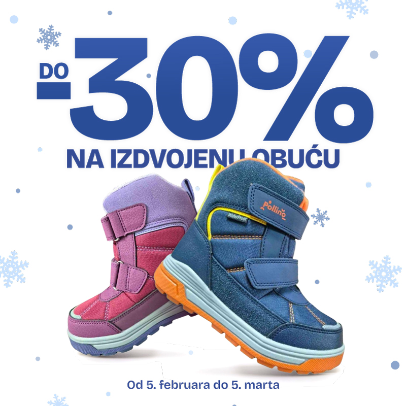 Iskoristi do 30% popusta na kompletnu kolekciju obuće jesen/zima. Akcija traje do 05.03.